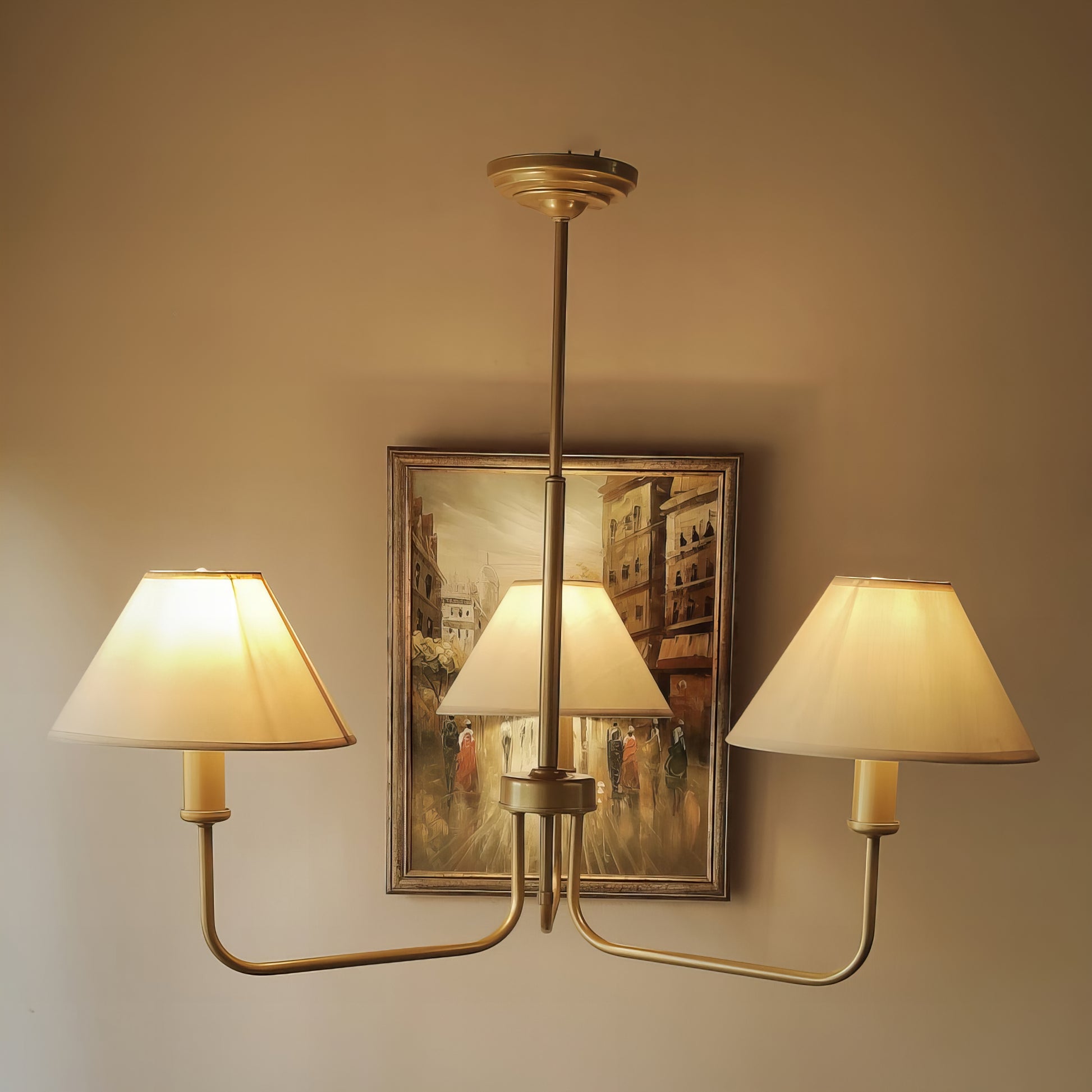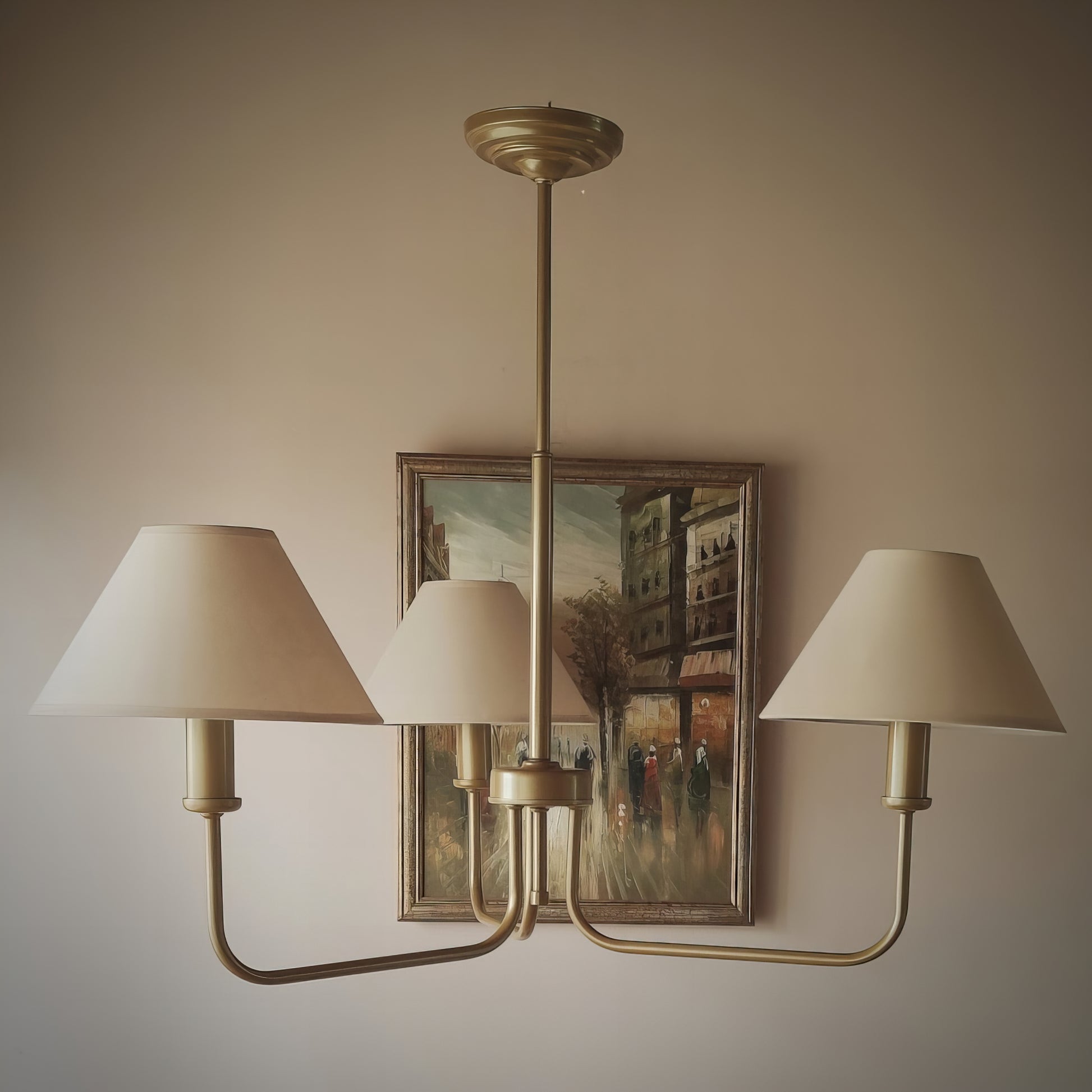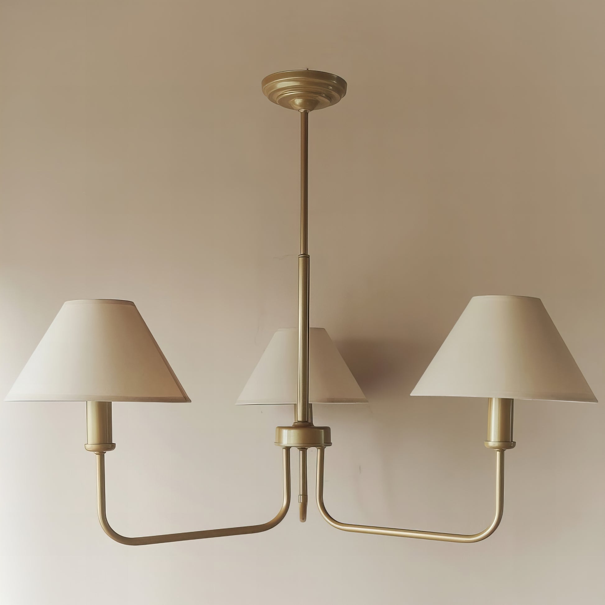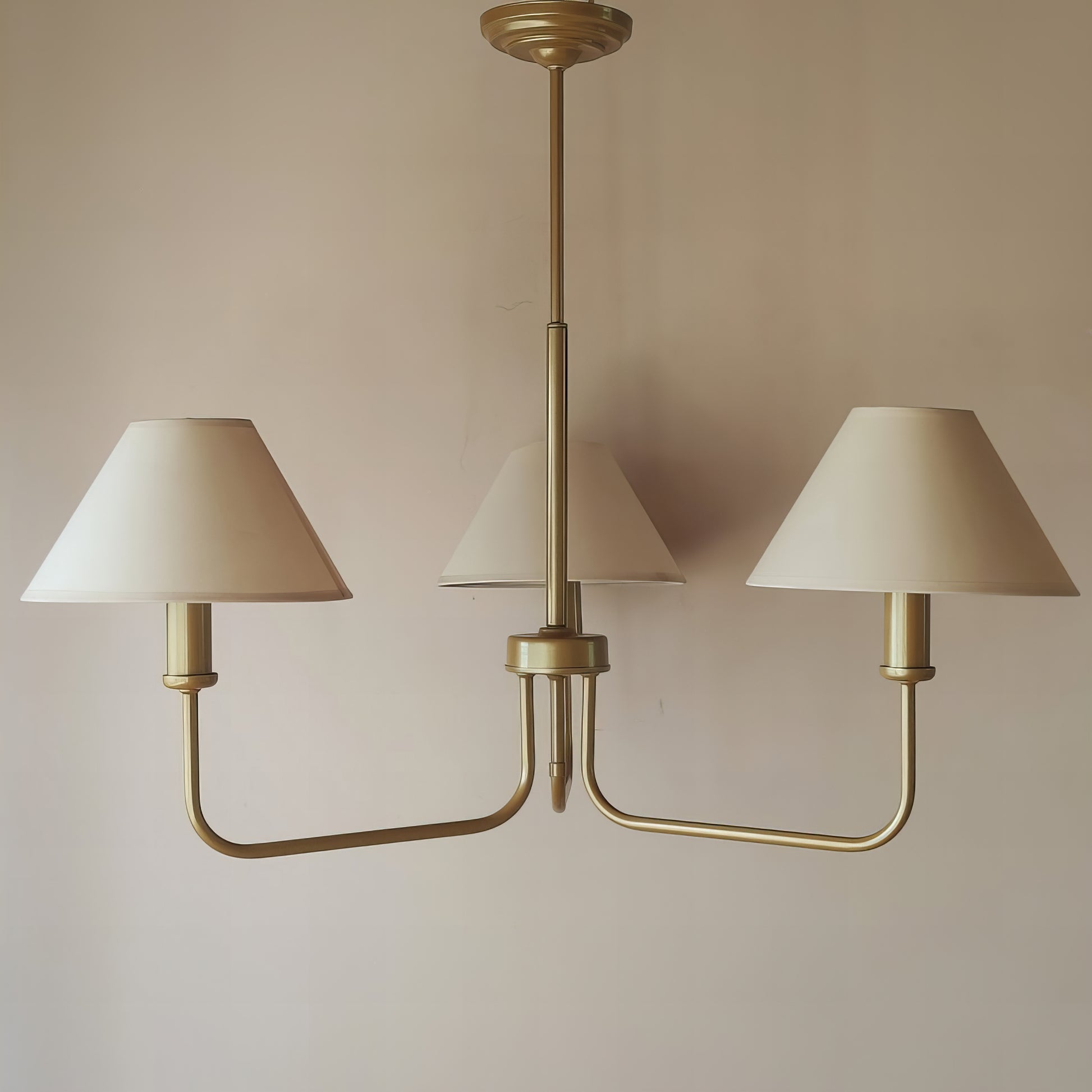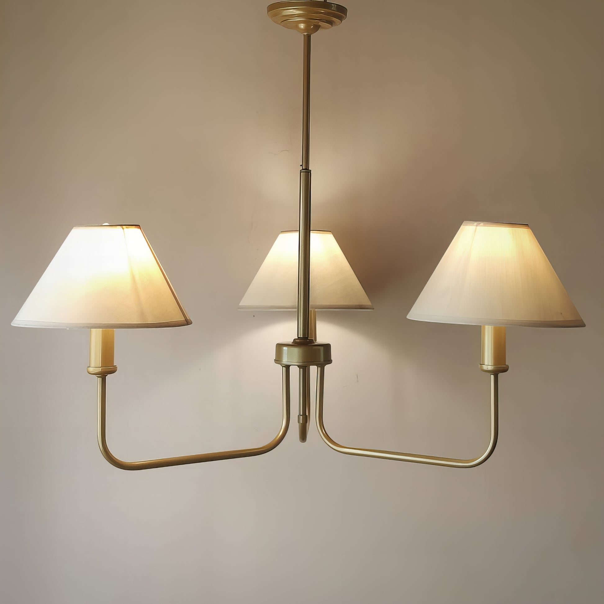 Добавете стил и елегантност в интериора на вашия дом с нашите златисти полилей, вдъхновен от модерен шаби шик. С изчистен дизайн, този полилей съчетава красотата на текстилните абажури с функционалност и стилов нюанс, който той носи.