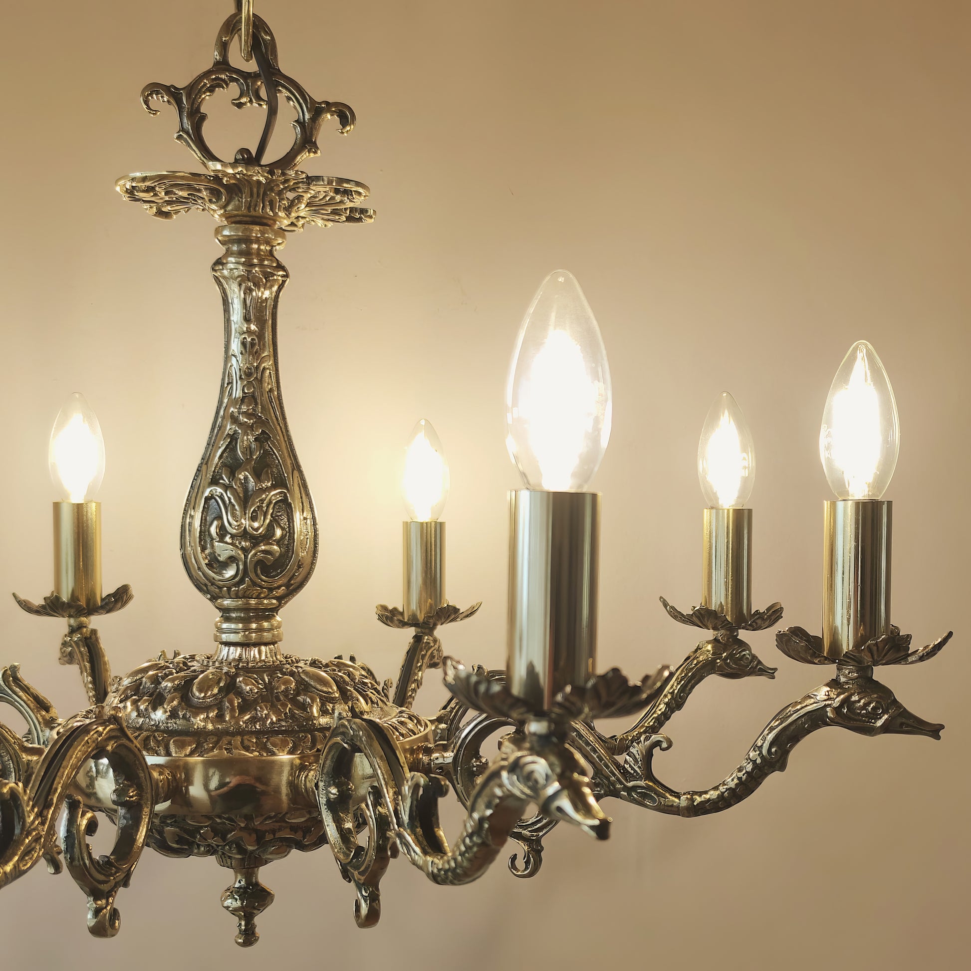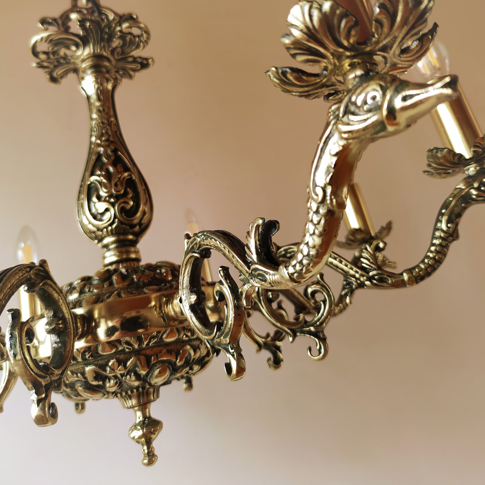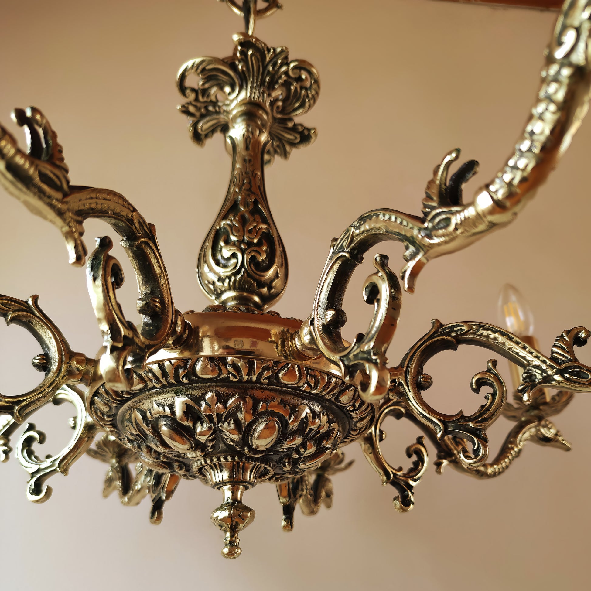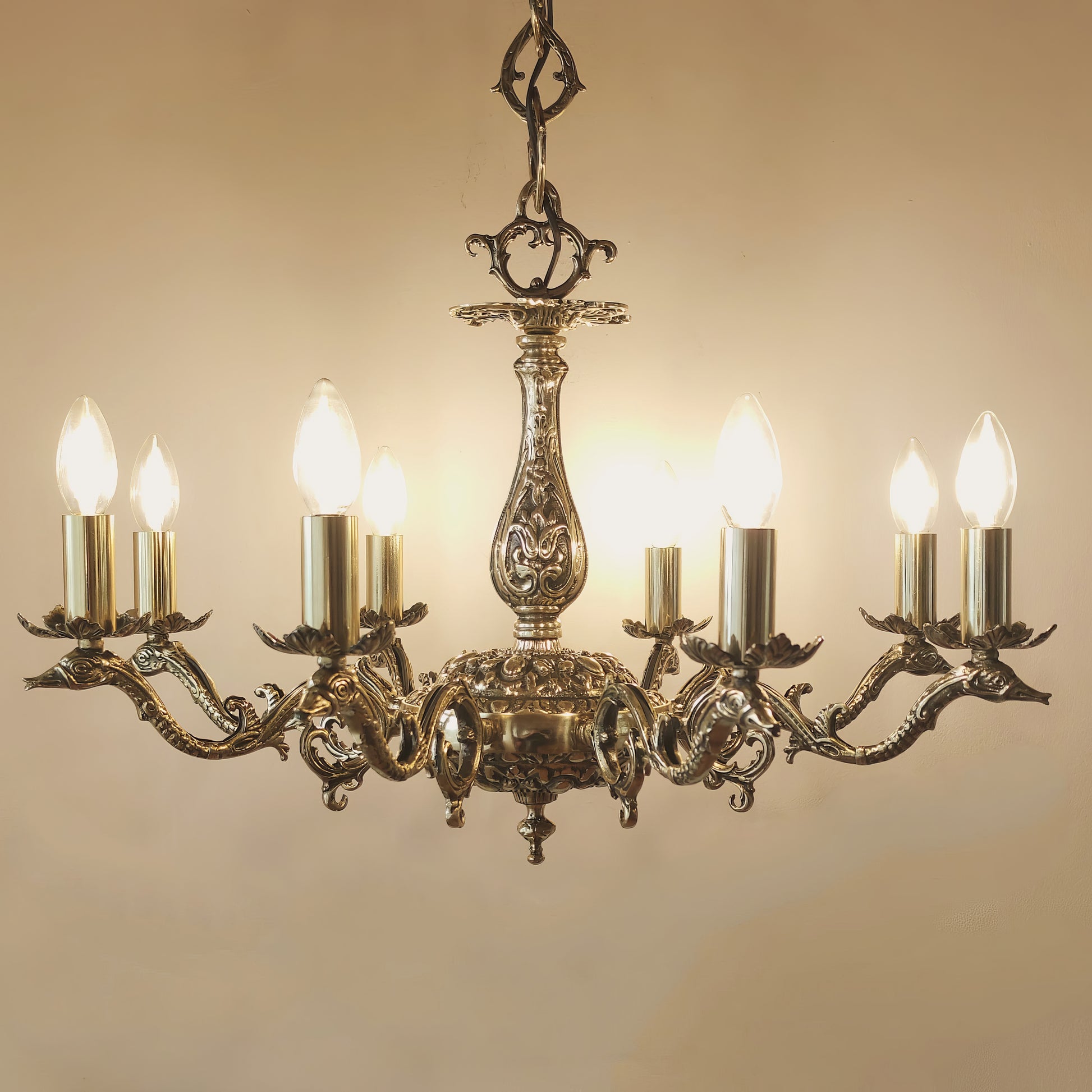 Луксозен старинен полилей | класически барок с 8 рамена | Mасивен месинг | тип свещ | БЕЗ/С Абажури | ПO 31 |