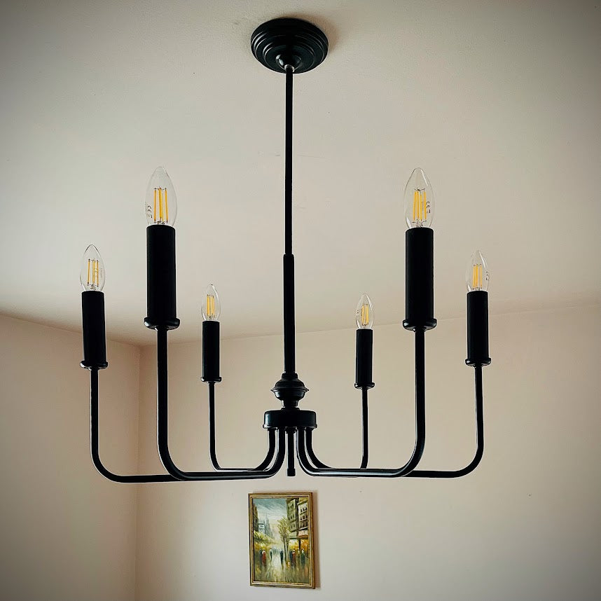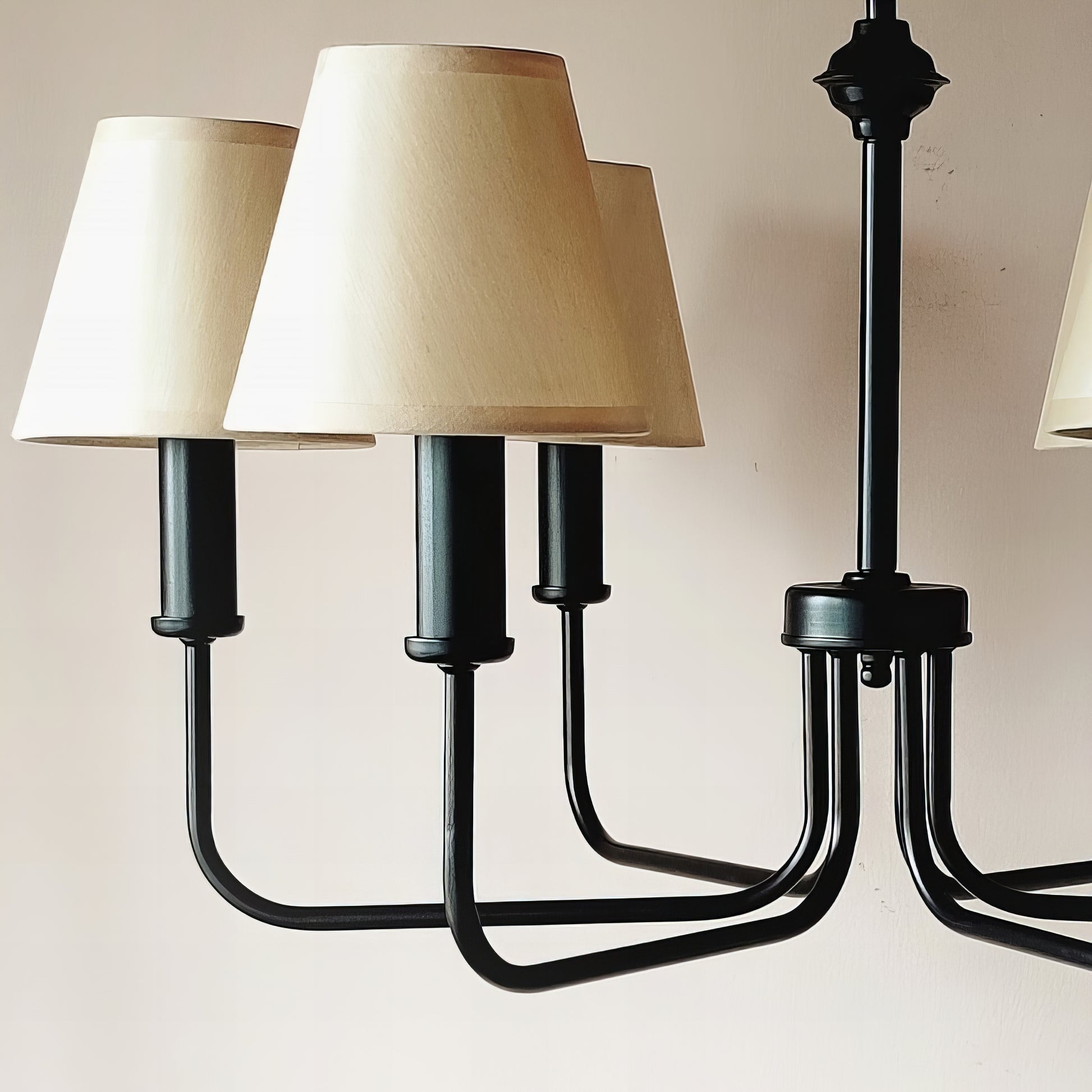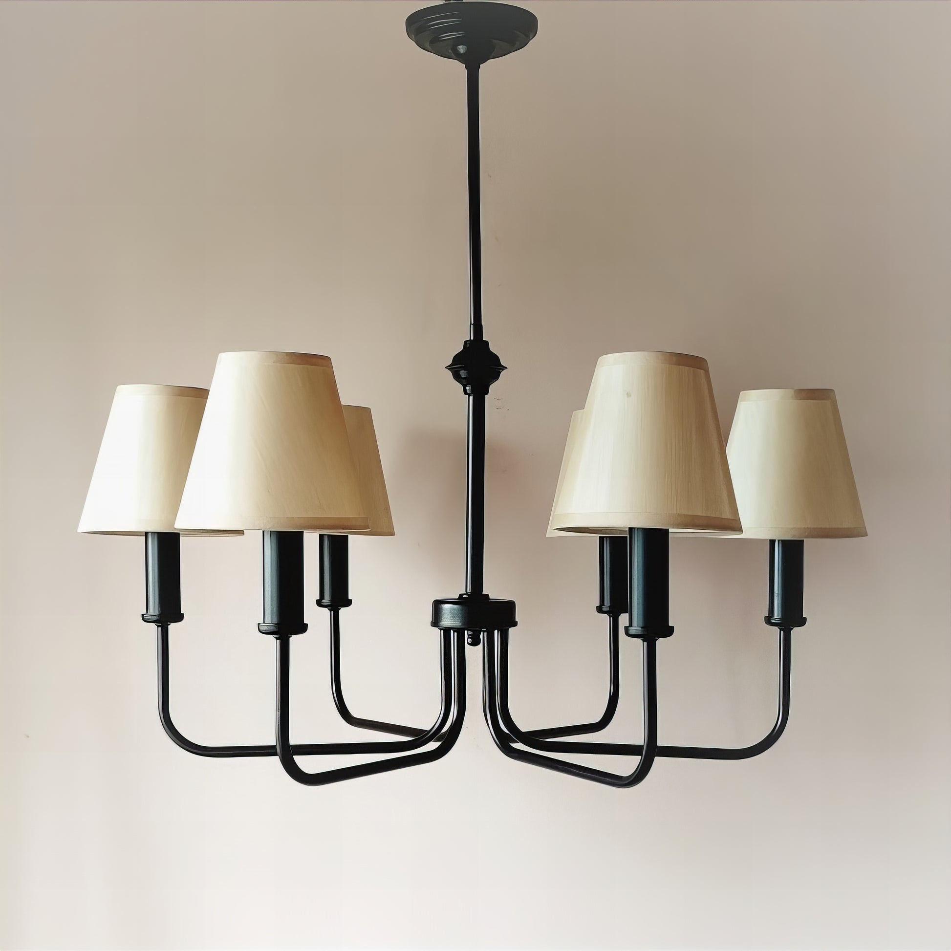 Модерен класически полилей | 6 рамена | висящ полилей | тип свещ | БЕЗ/С текстилни абажури| метален | ПO 19 |