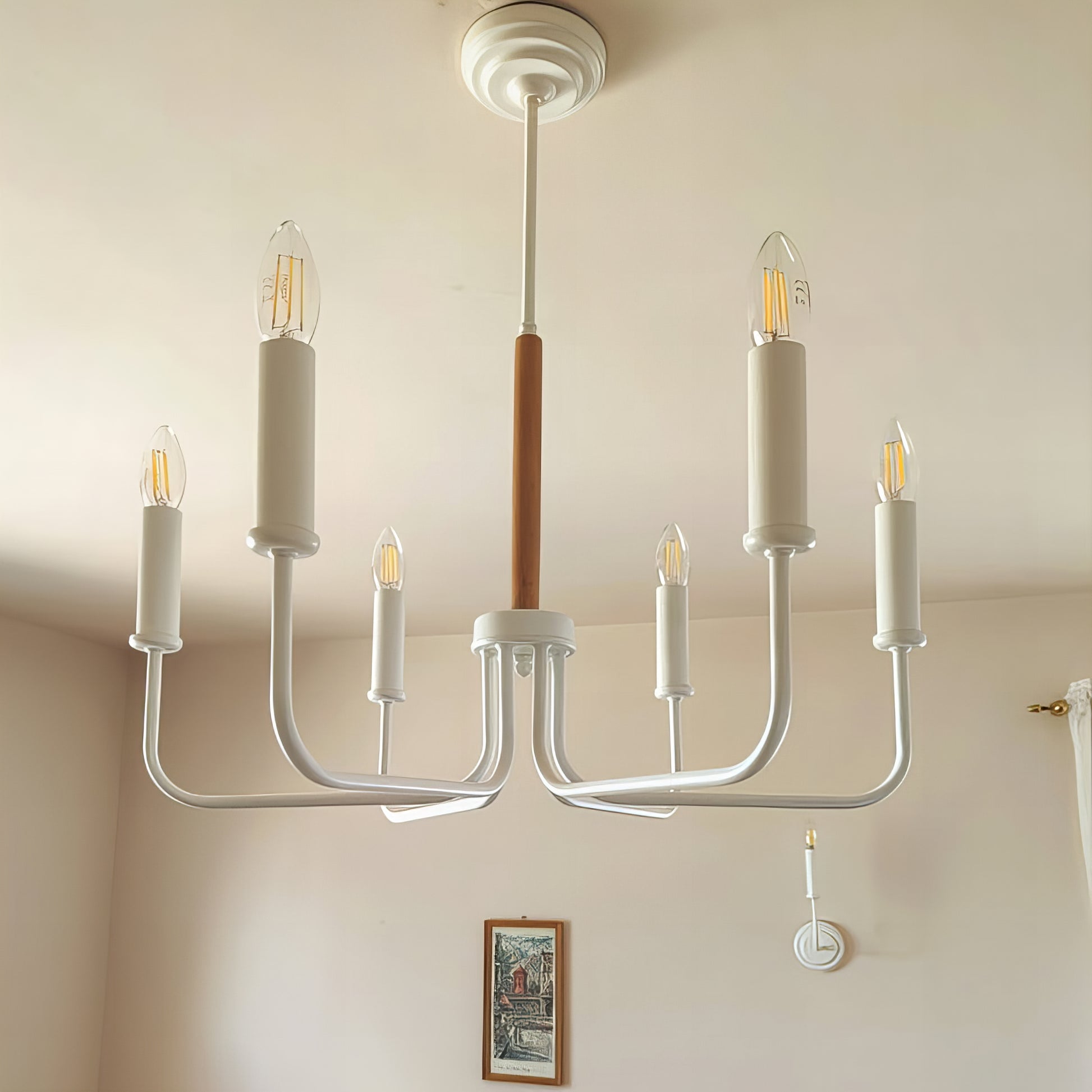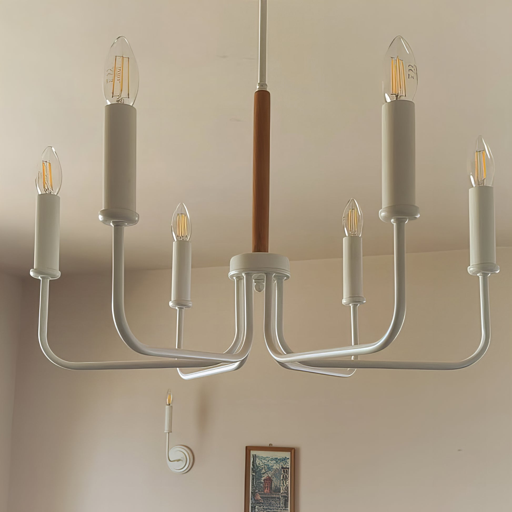 Модерен Класически Висящ Полилей | метален с дървен детайл | 6 рамена | Б ПO 29 |