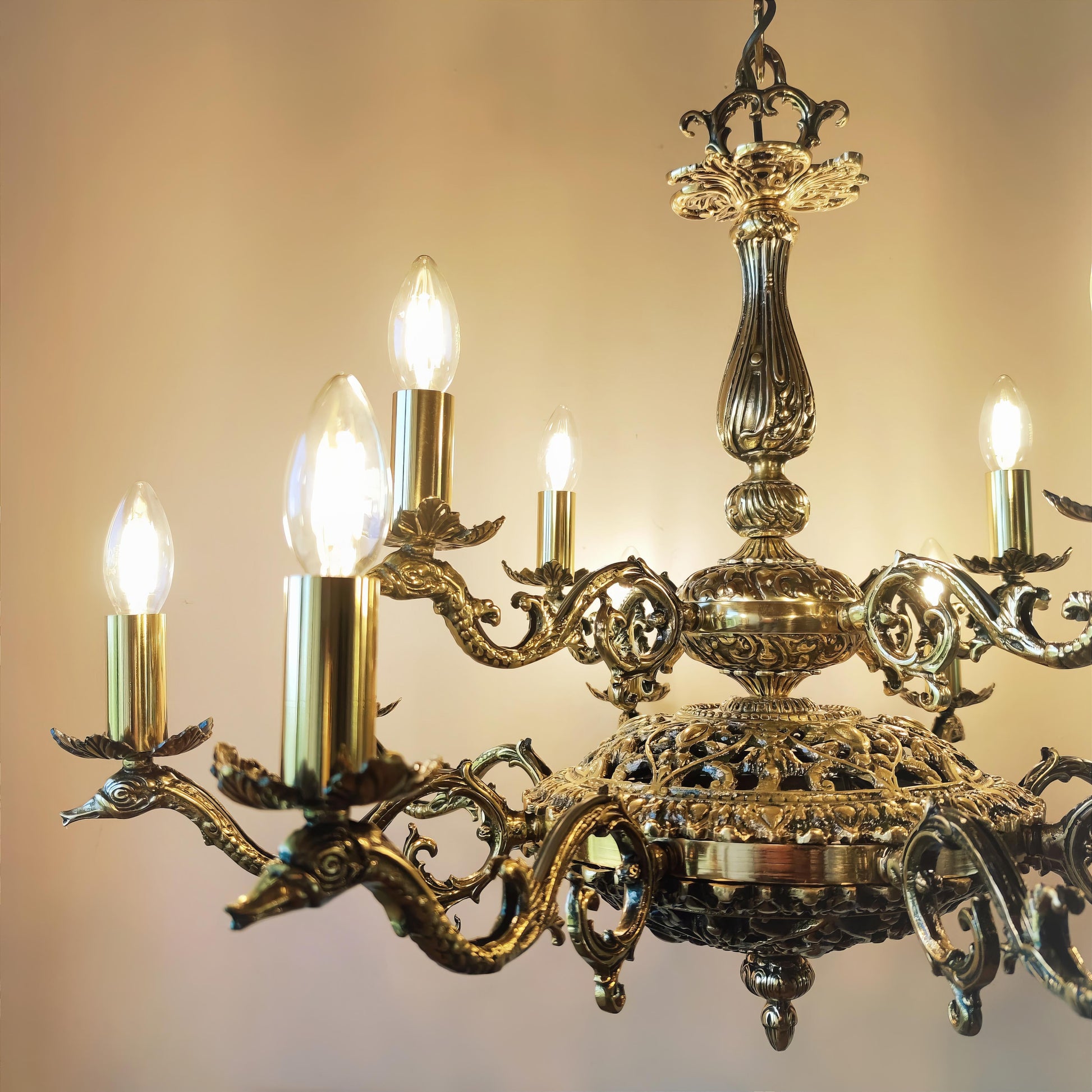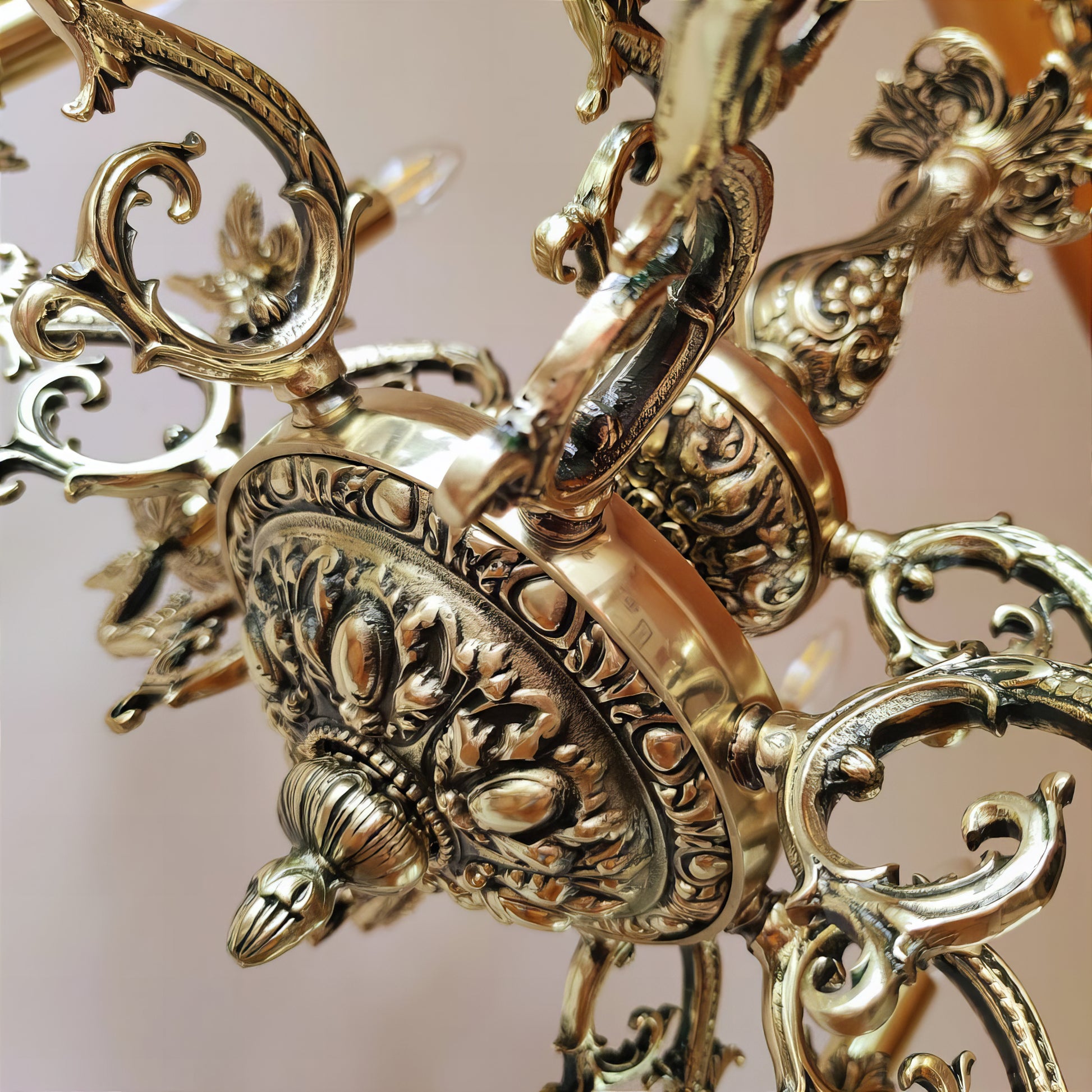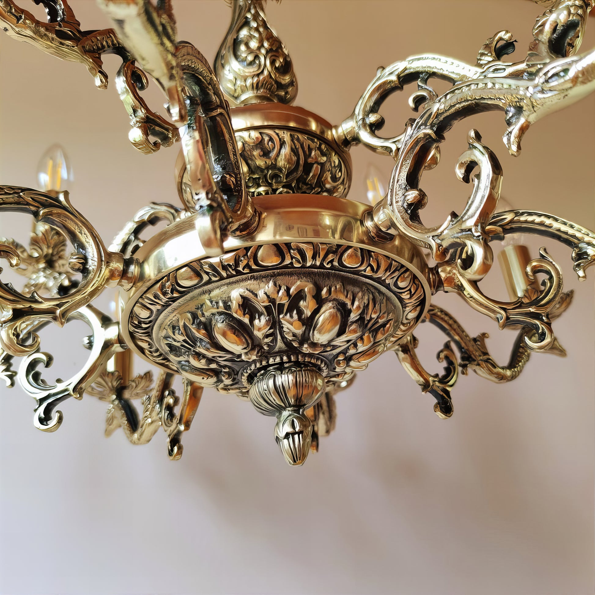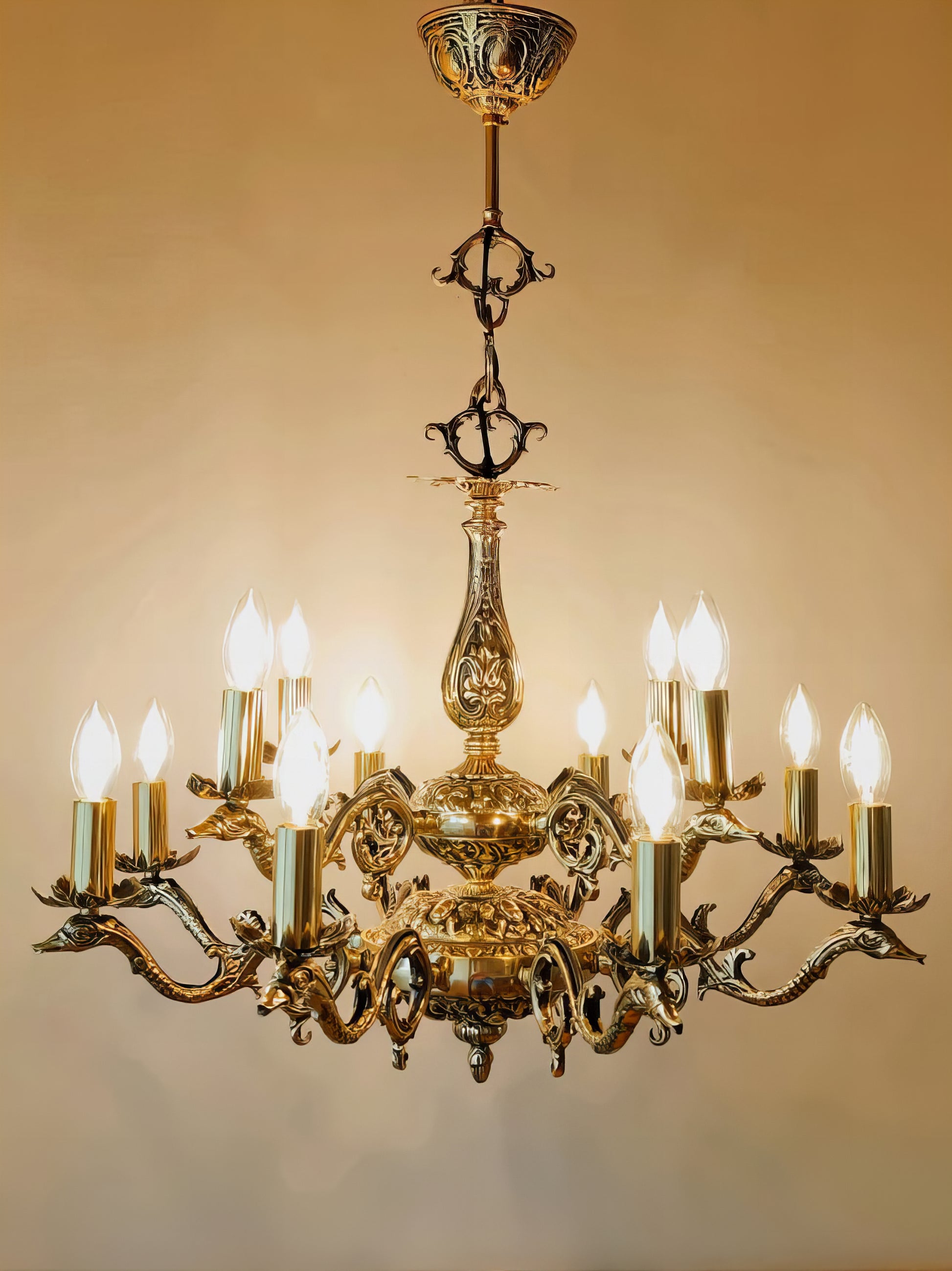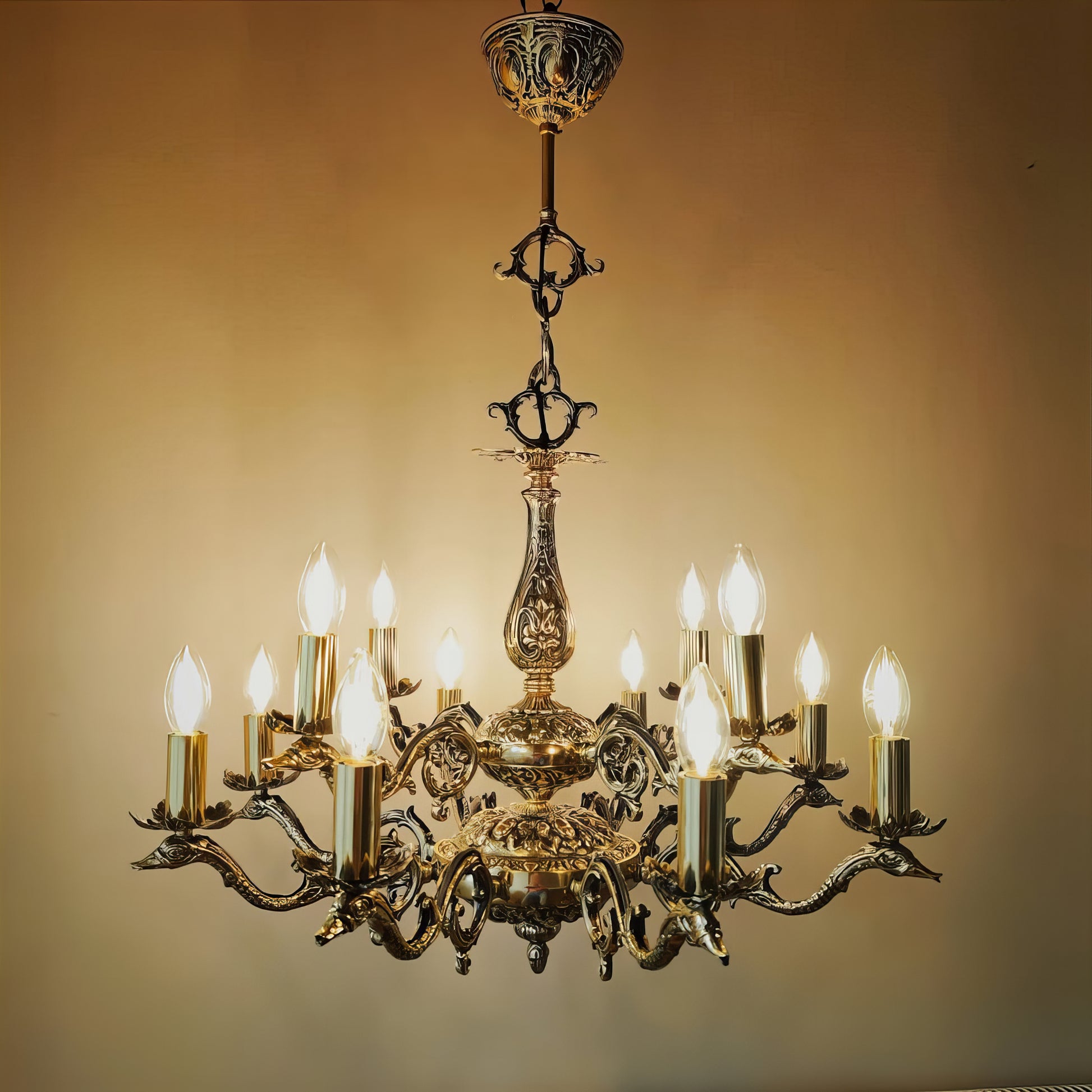 Луксозен старинен месингов полилей на две нива | тип свещ | 12 рамена | стил класически барок | ПO 10 |
